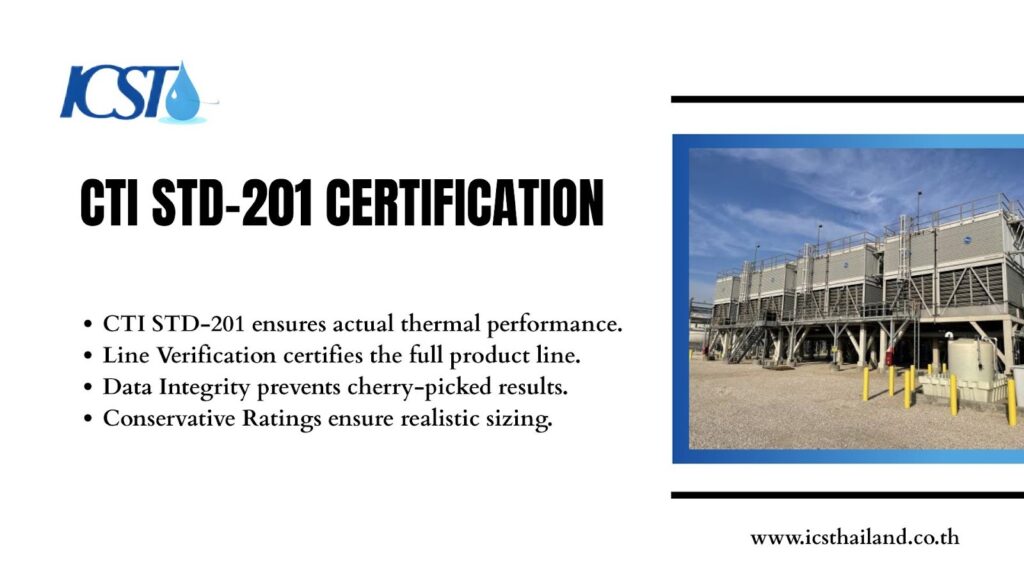 Engineers often specify certification without fully grasping the scope of the standard. CTI STD-201 serves as the certification standard for commercial cooling towers. It focuses specifically on thermal performance, ensuring that the published capacity ratings match the actual capabilities of the equipment.